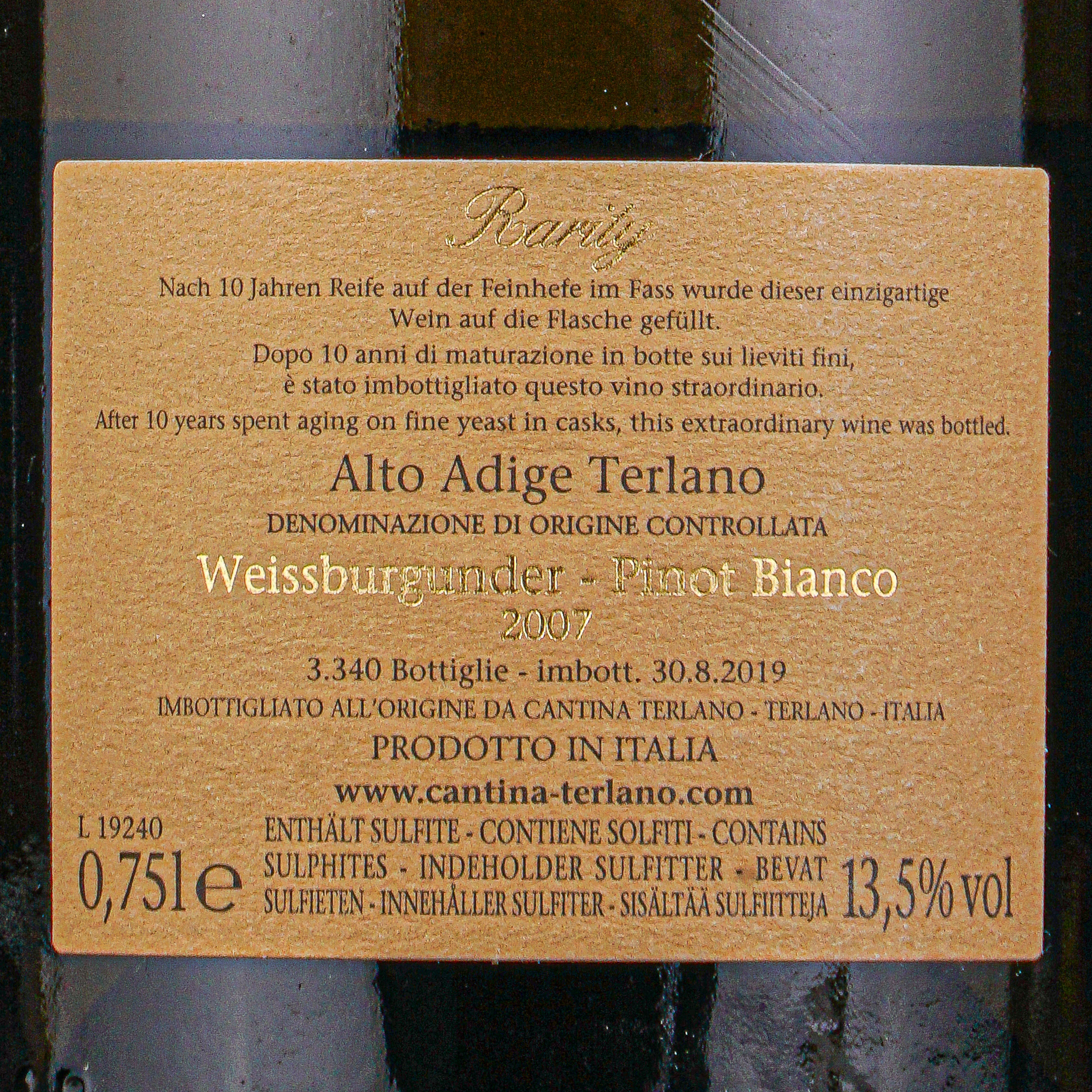 Pinot Bianco 2007 Rarita doc Cantina di Terlano lt 0,750