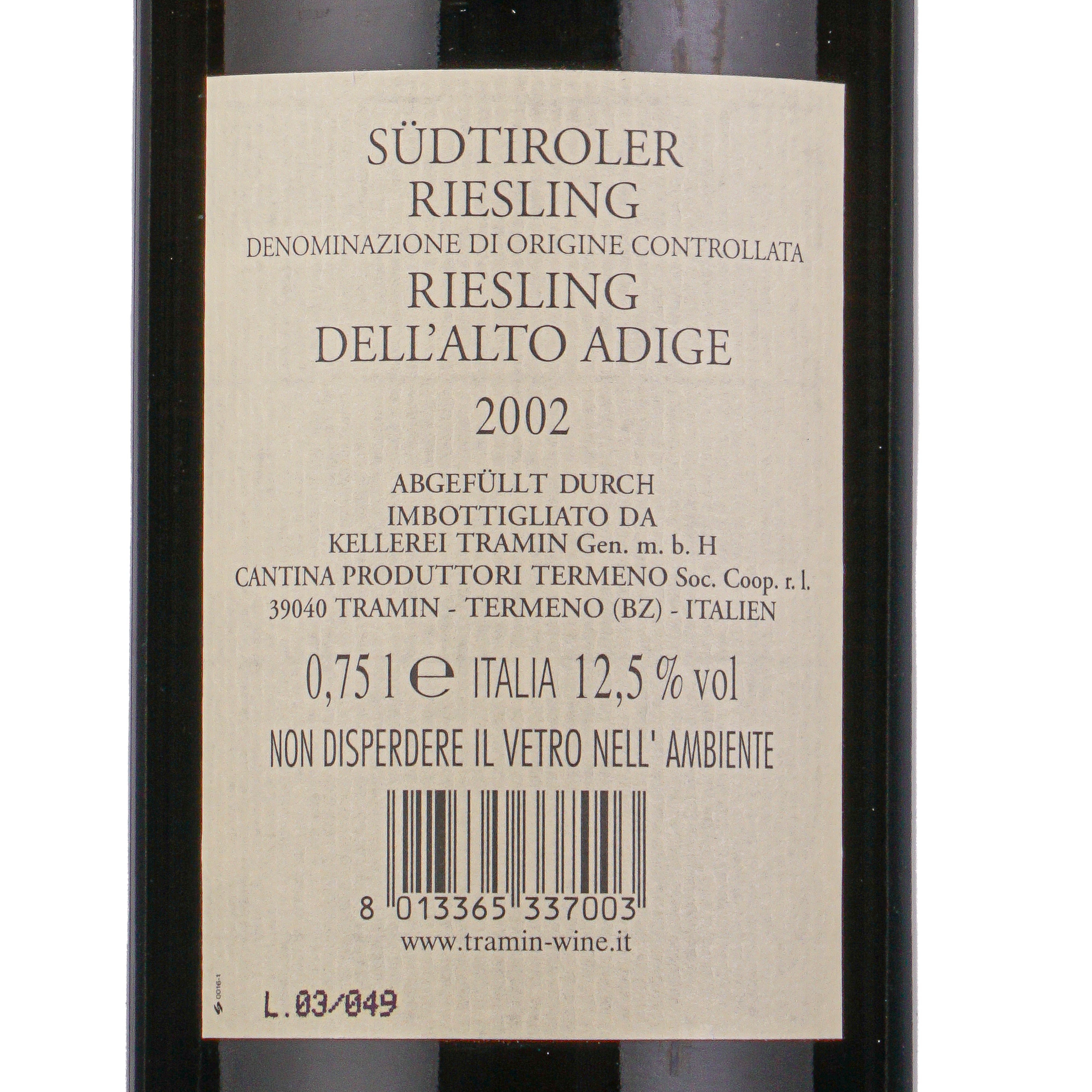 Riesling 2002 Cantina di Termeno lt.0,750