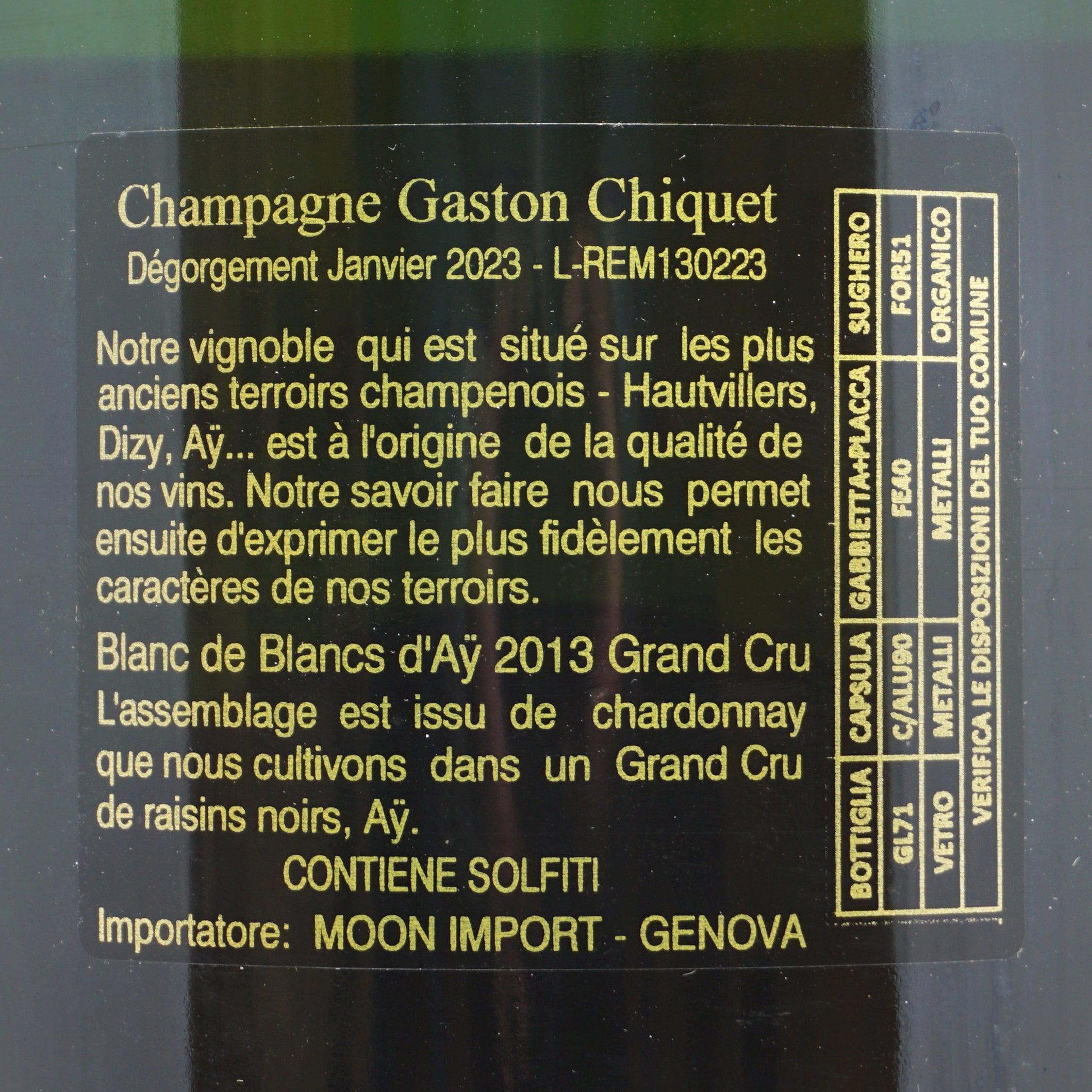 Champagne Blanc de Blancs d'Ay 2013 Grand Cru Gaston Chiquet Magnum
