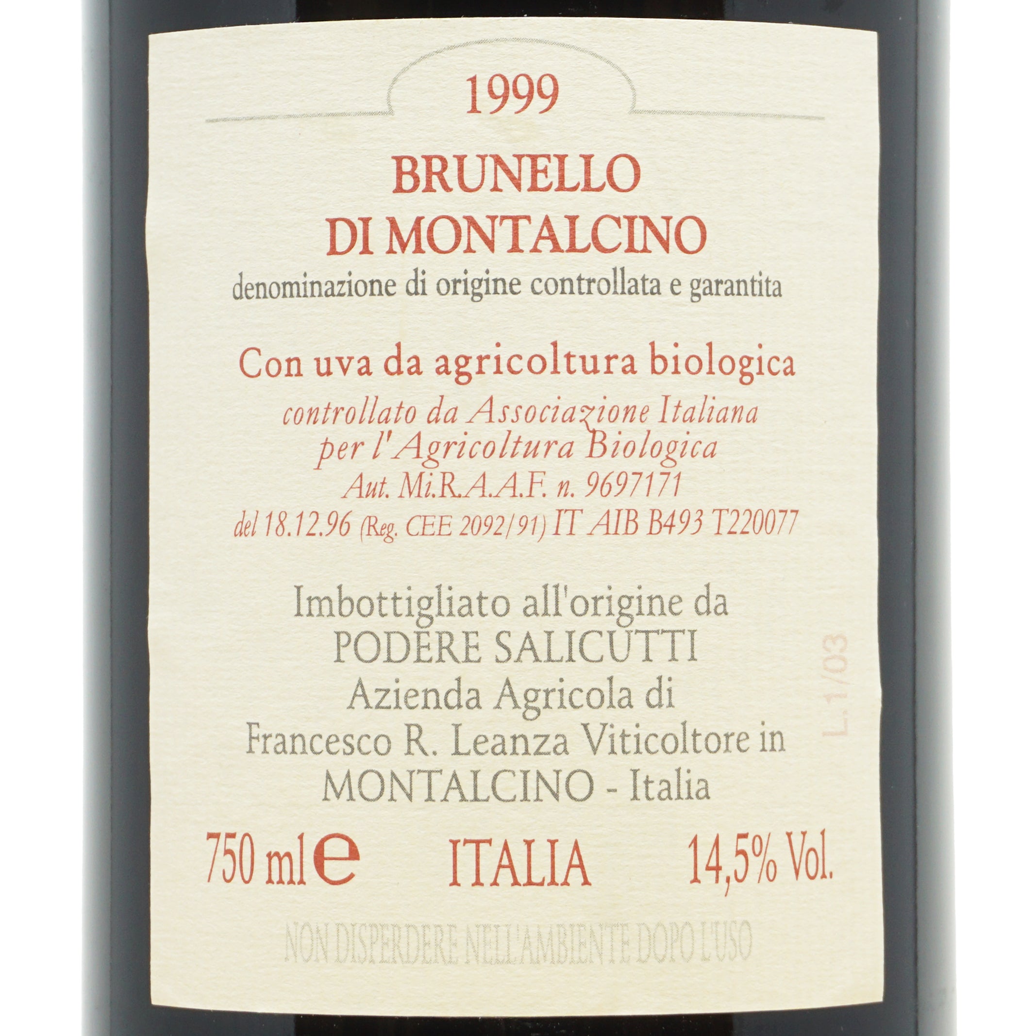 Brunello di Montalcino 1999 docg Podere Salicutti lt.0,750