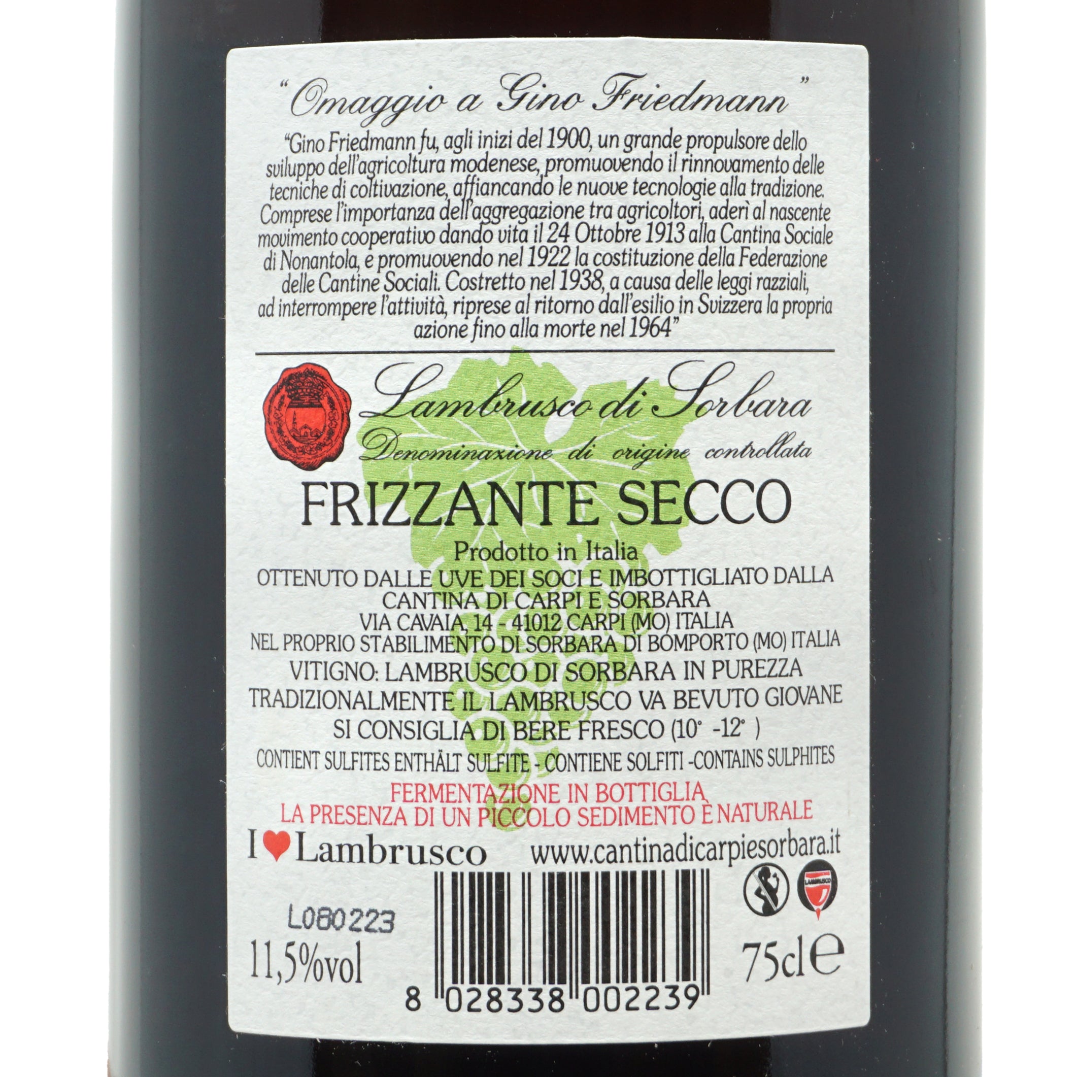 Lambrusco di Sorbara 2022 Omaggio a Gino Friedmann doc Cantina di Sorbara lt.0,750
