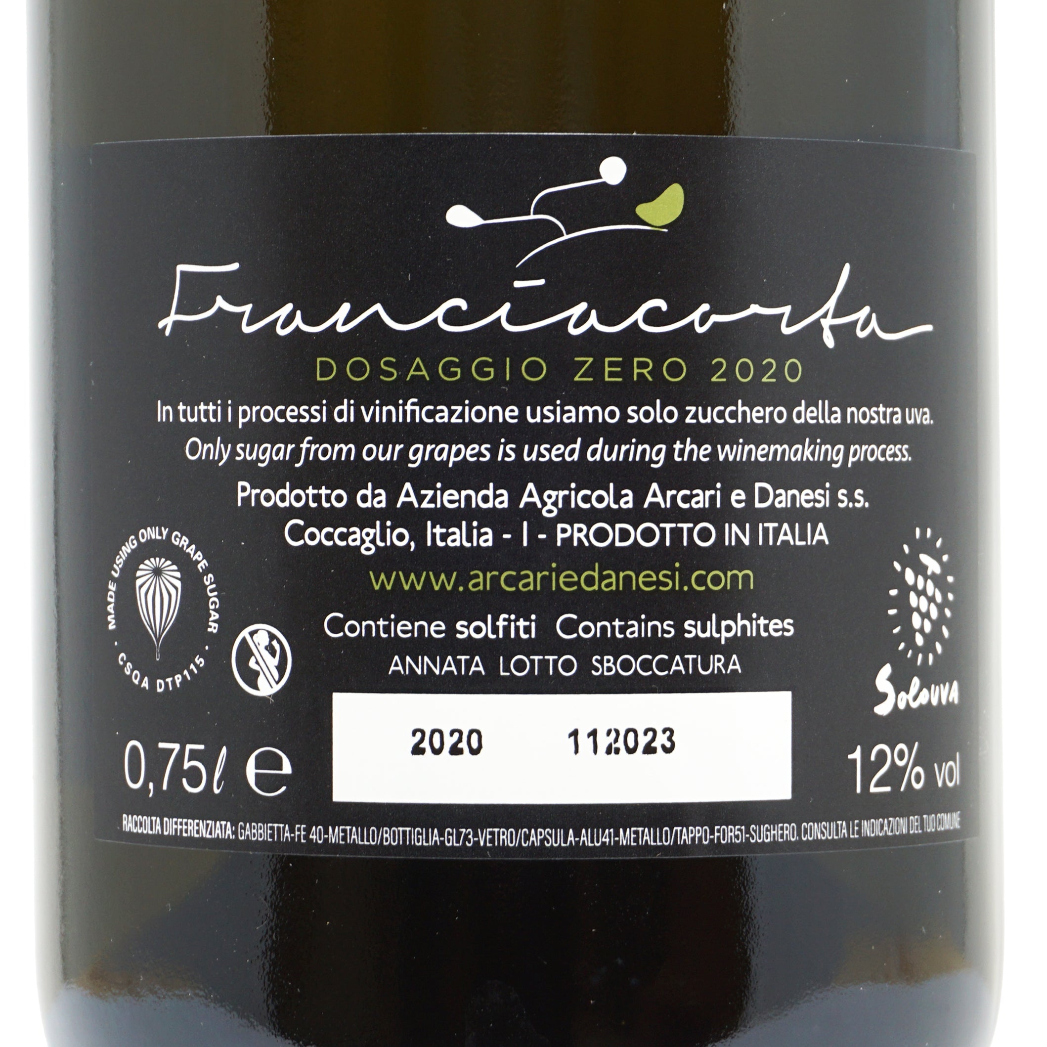 Franciacorta Dosaggio Zero 2020 docg Arcari+Danesi lt.0,750