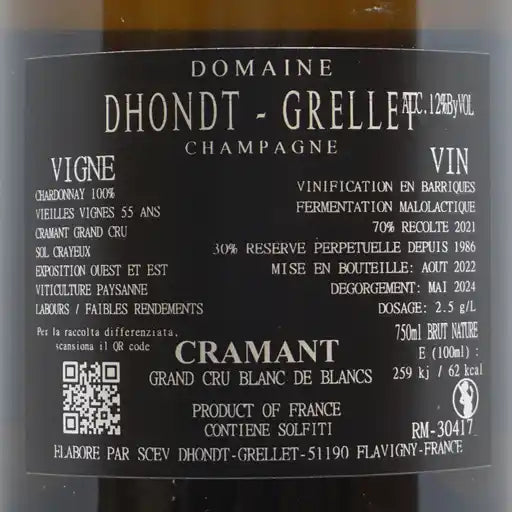 Champagne Cramant Grand Cru B.de Blancs Ex. Brut Dhondt-Grellet lt.0,750