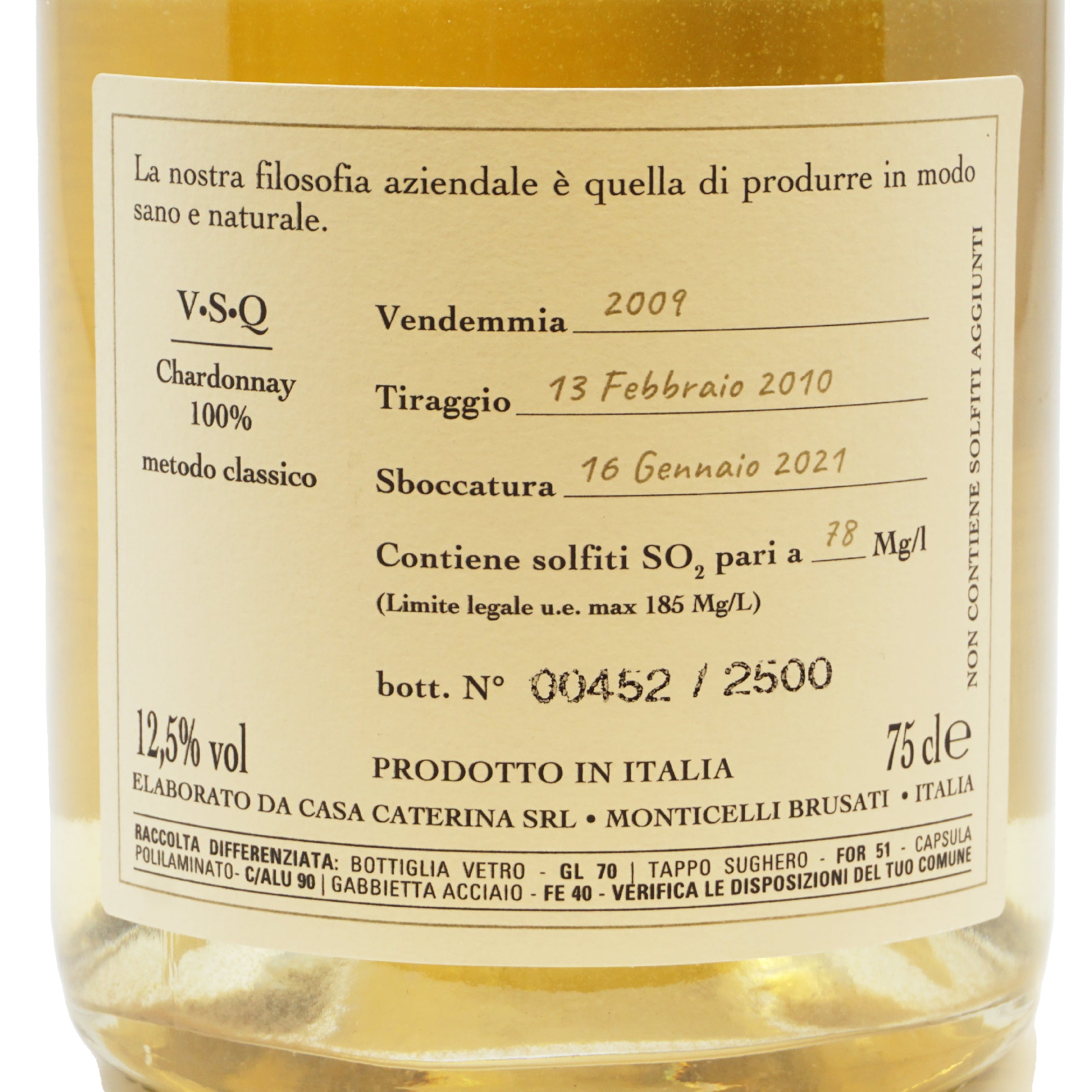 Vertical Bianc de Bianc 2009 Pas Dose Classic Method Casa Caterina lt.0,750
