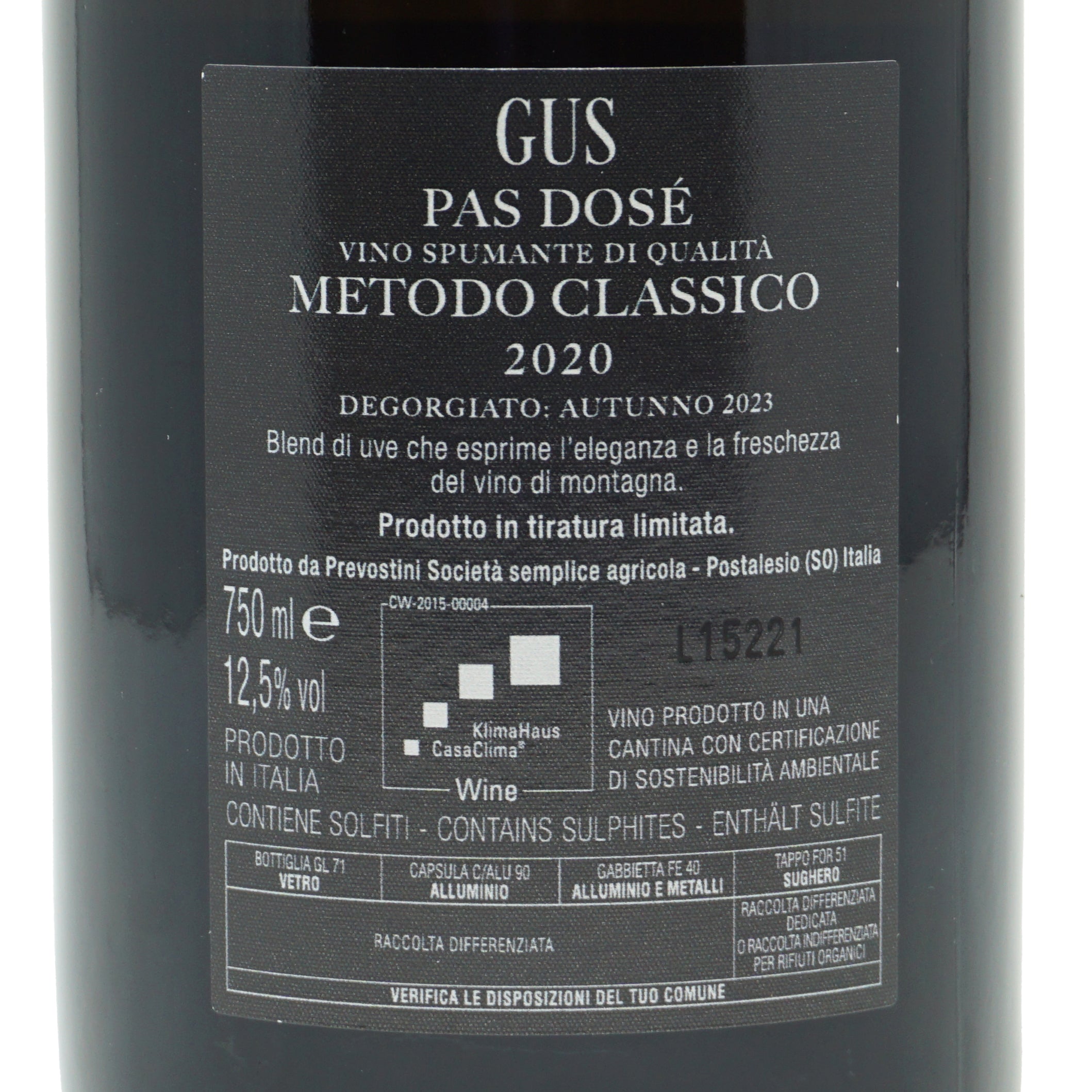 Gus Pas Dose 2020 Sparkling Classic Method Mamete Prevostini lt 0.750