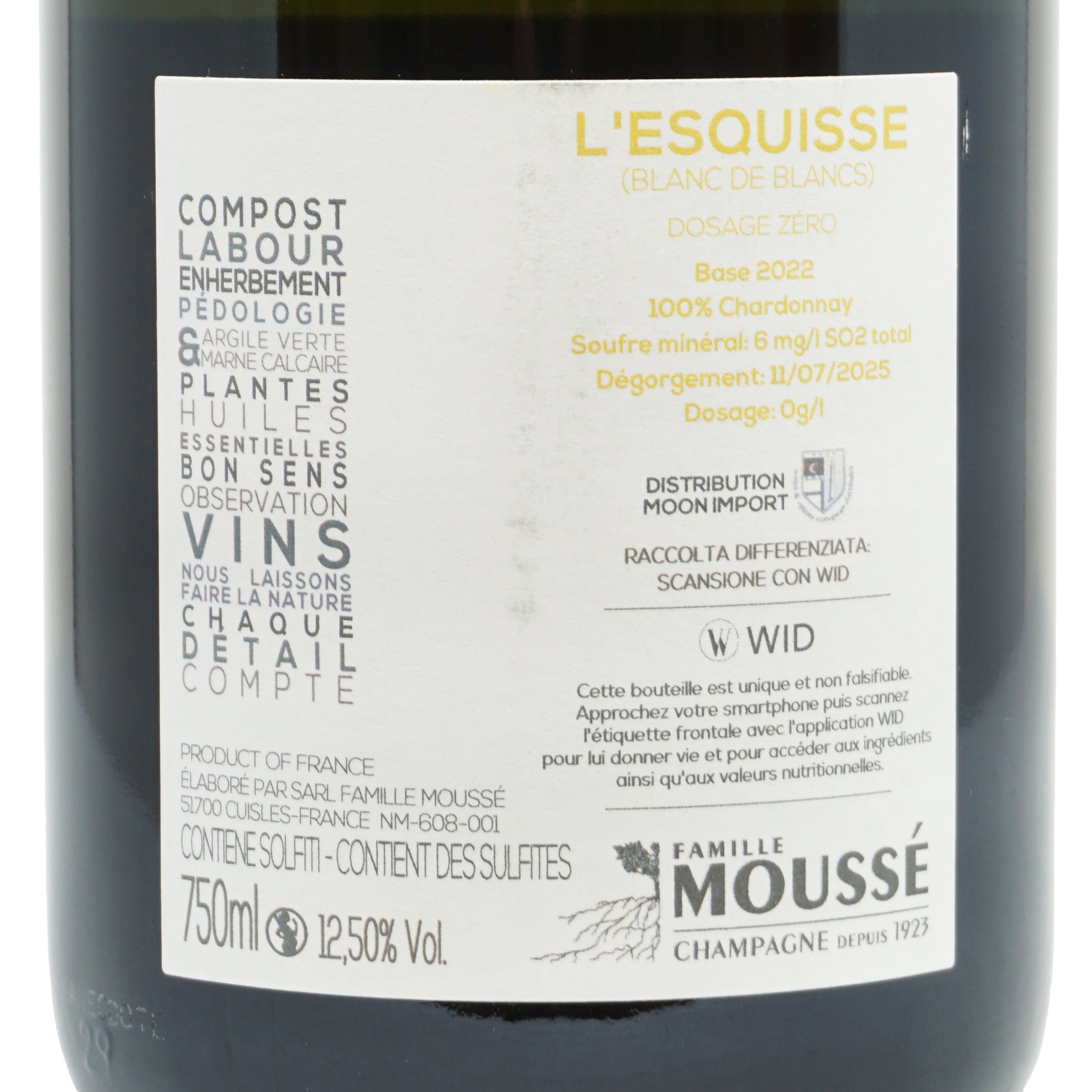 Champagne l'Esquisse Blanc de Blancs Extra Brut Mousse Fils lt.0,750