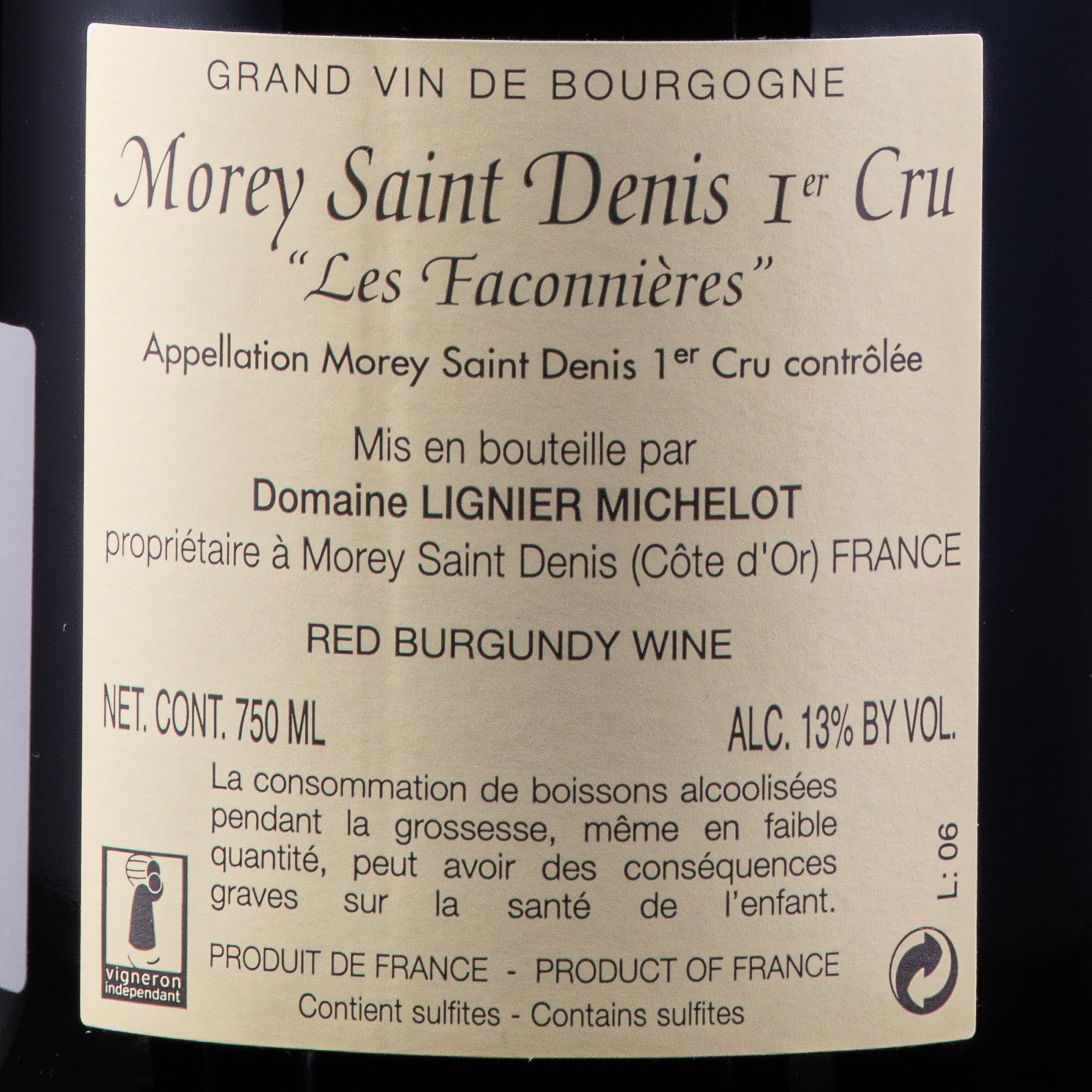 LES FACONNIERES 2006 MOREY SAINT DENIS 1er cru lt.0,750